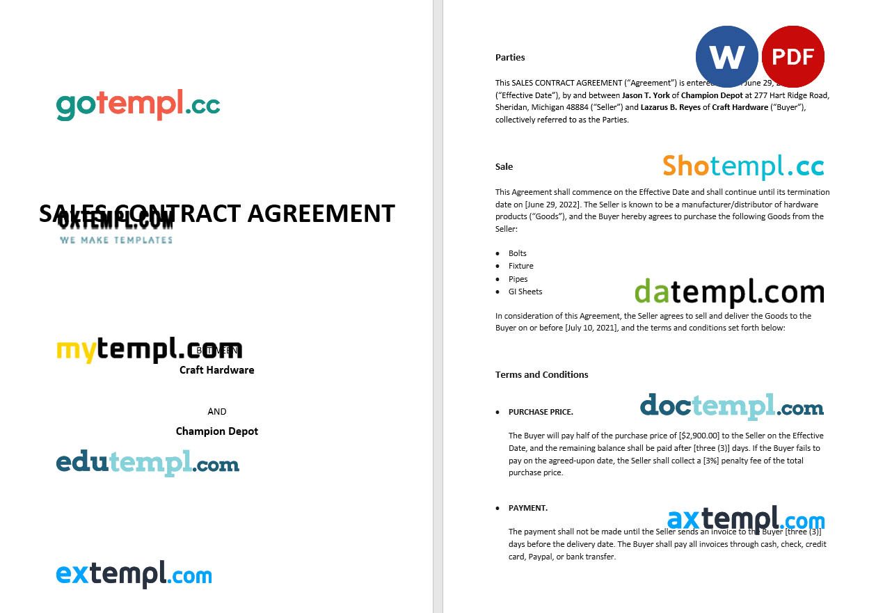 Freefree download sales contract agreement example, Word and PDF format