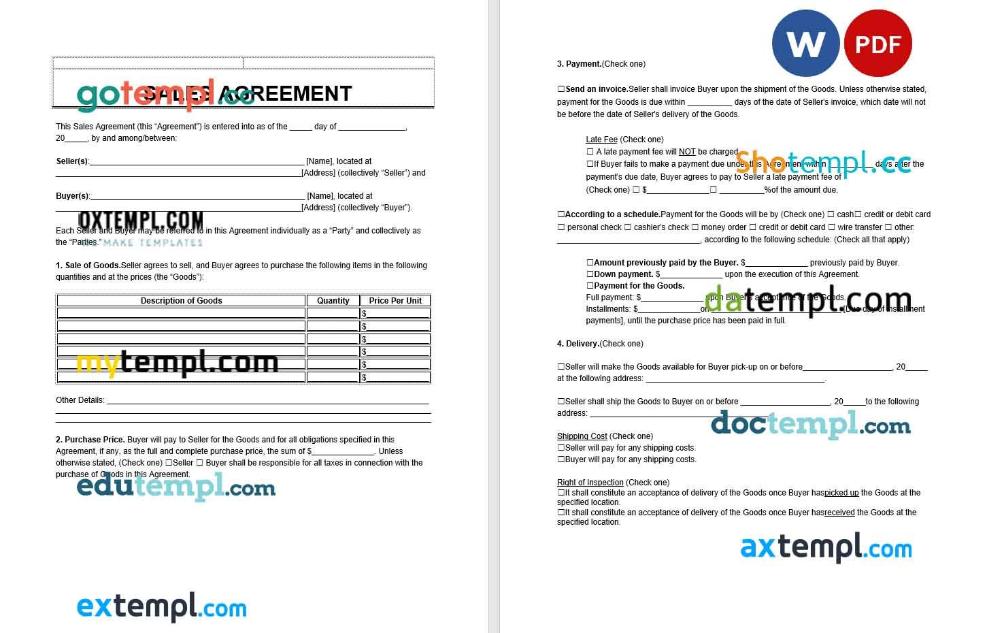 Freefree download sales contract example, Word and PDF format version 2