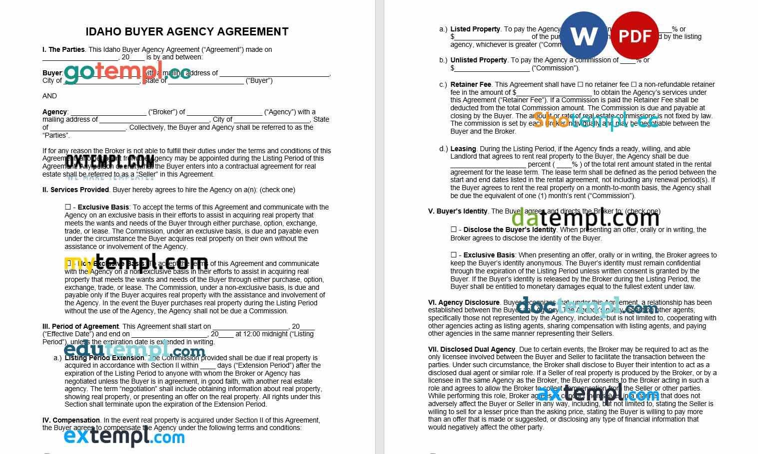 Freefree download idaho buyer agency agreement example, Word and PDF format