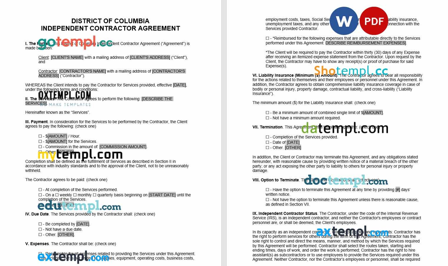 Freefree download Kansas independent contractor agreement example, Word and PDF format