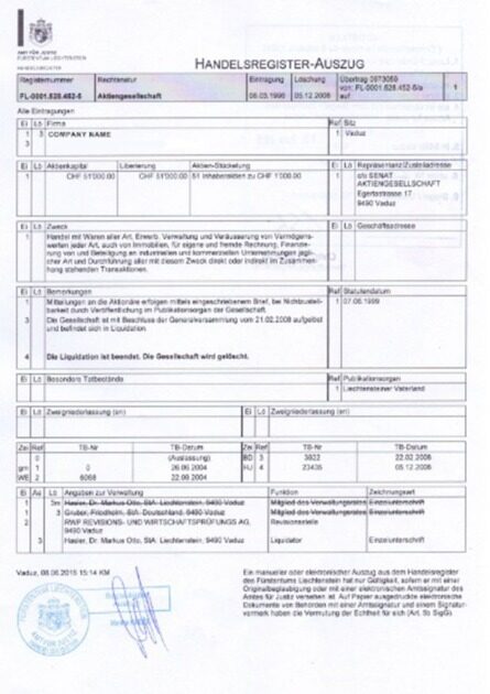 Liechtenstein Certificate of Incorporation PSD template
