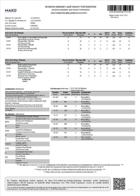 Burdur Mehmet Akif Ersoy University transcript Word and PDF template, 3 pages